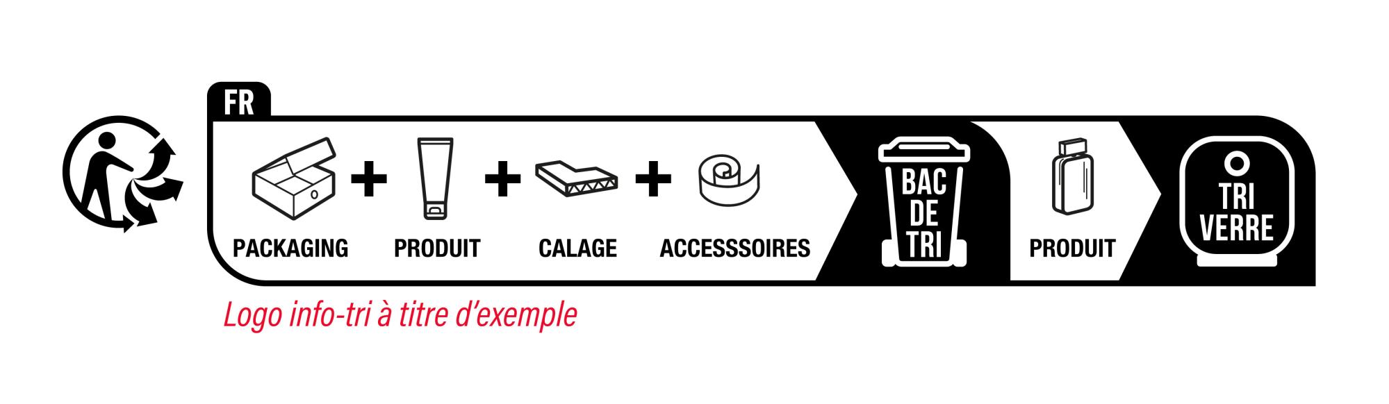 Le produit peut-être composé de plusieurs éléments possédant des modalités de tri différentes, ainsi le logo sera construit en conséquence et détaillé élément par élément en fonction des réglementations de tri de chacun.